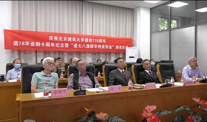 会上,学校各级领导分别致辞,对北京逸群工程咨询有限公司、北京建工华创科技股份有限公司公司及道78班校友成立“道七八逸群华创奖学金”表示了感谢。