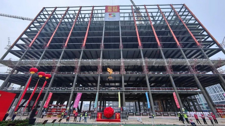 2023年10月12日,我公司监理的家园中心项目首栋单体-总部大楼工程主体结构封顶。